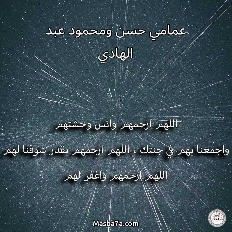 اللهم ارحم ( عمامي حسن ومحمود عبد الهادي ) وانس وحشتهم واجمعنا بهم في جنتك ، اللهم ارحمهم بقدر شوقنا لهم اللهم ارحمهم واغفر لهم.