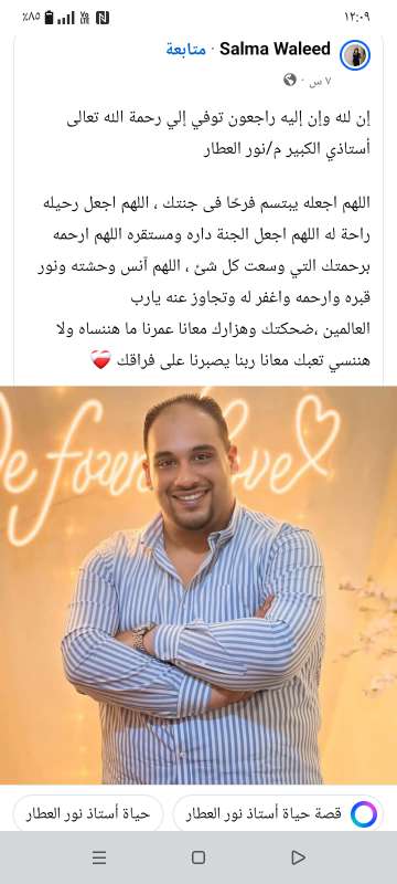اللهم ارحم ( مستر نور العطار ) وانس وحشته واجمعنا به في جنتك ، اللهم ارحمه بقدر شوقنا له اللهم ارحمه واغفر له .