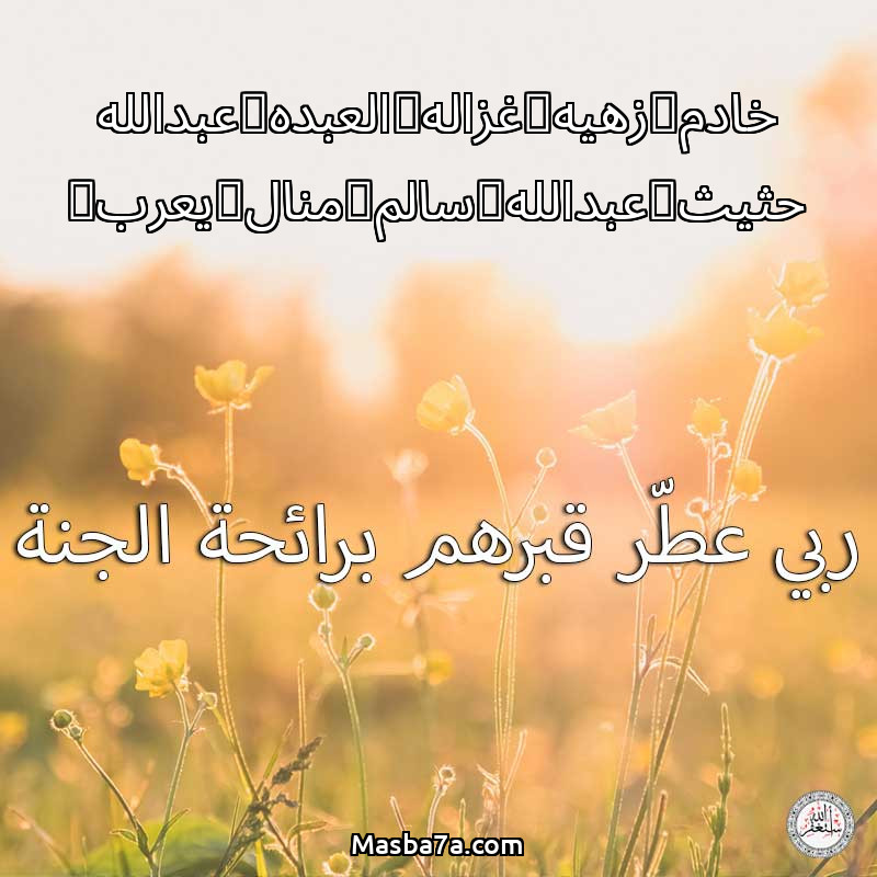 دعاء عن أرواح المرحومين خادم'زهيه'غزاله'العبده'عبدالله حثيث'عبدالله'سالم'منال'يعرب'