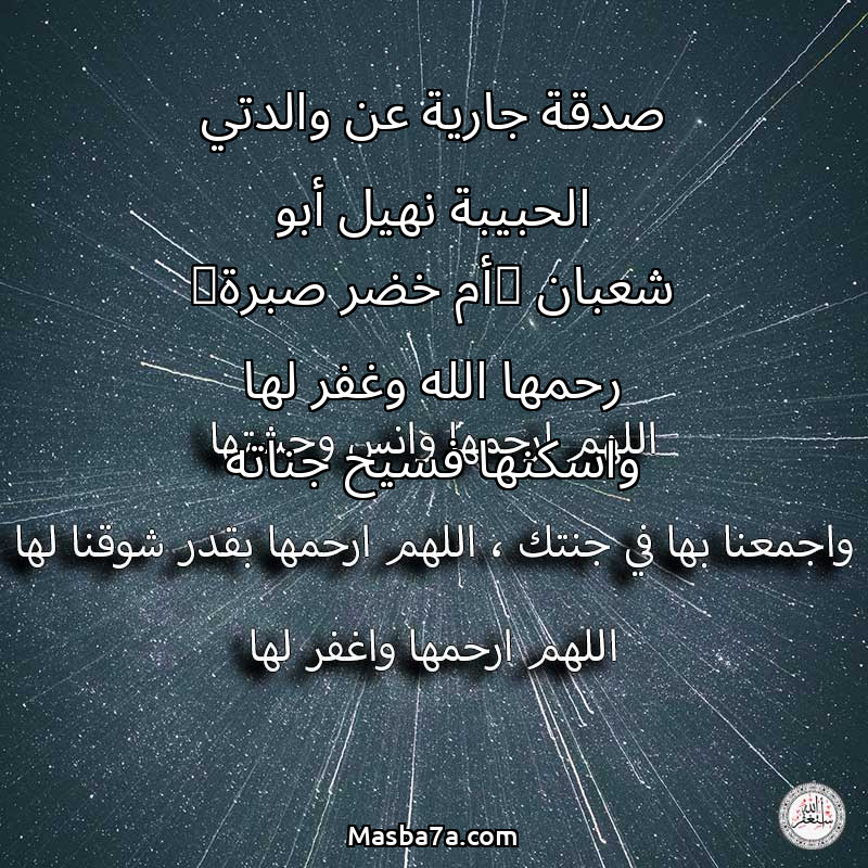 دعاء عن روح المرحومة صدقة جارية عن والدتي الحبيبة نهيل أبو شعبان (أم خضر صبرة) رحمها الله وغفر لها واسكنها فسيح جناته