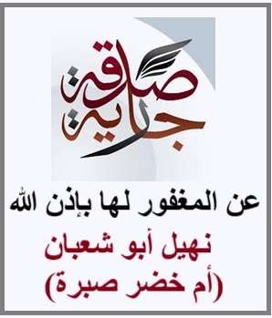 صدقة جارية عن والدتي الحبيبة نهيل أبو شعبان (أم خضر صبرة) رحمها الله وغفر لها واسكنها فسيح جناته