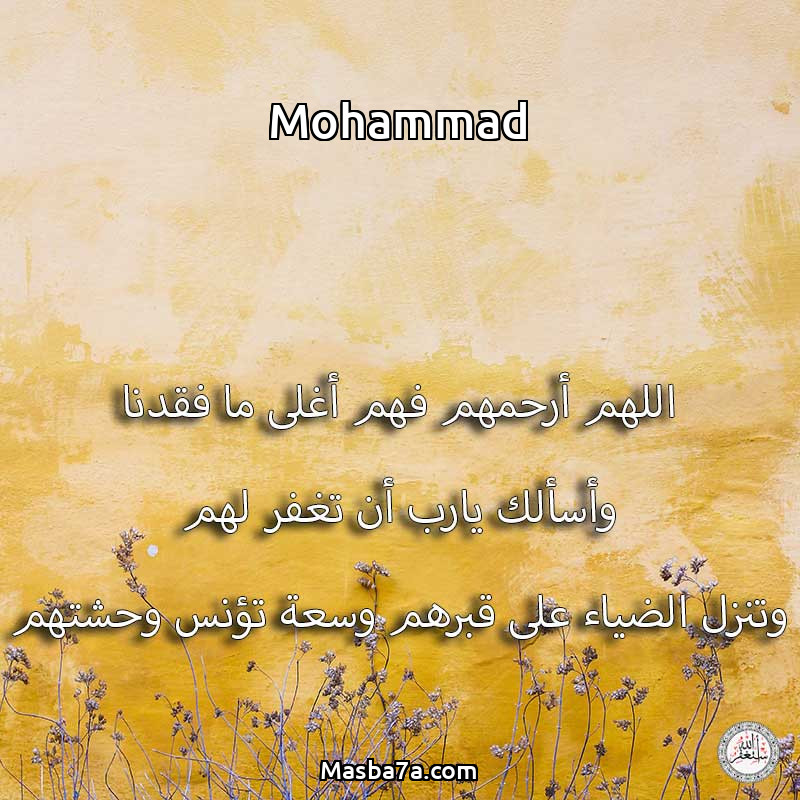 اللهم ارحم ( Mohammad ) وانس وحشتهم واجمعنا بهم في جنتك ، اللهم ارحمهم بقدر شوقنا لهم اللهم ارحمهم واغفر لهم.