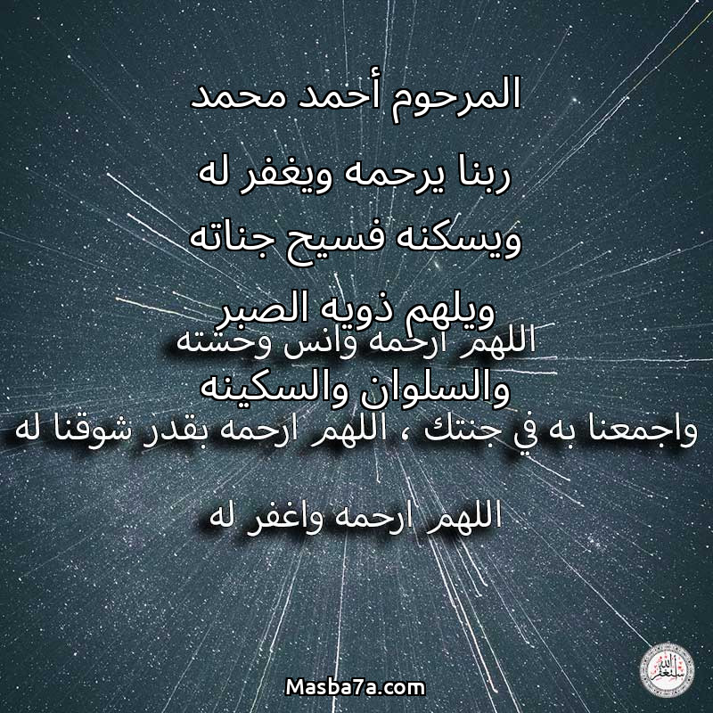 دعاء عن روح المرحوم المرحوم أحمد محمد ربنا يرحمه ويغفر له ويسكنه فسيح جناته ويلهم ذويه الصبر والسلوان والسكينه