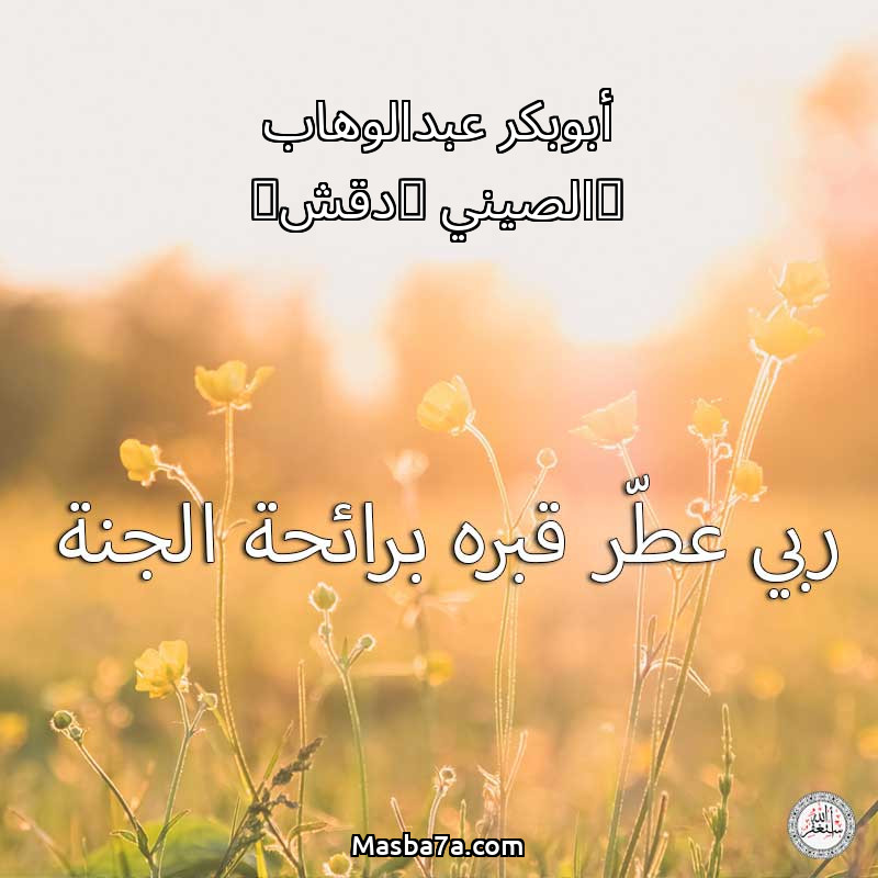 اللهم ارحم ( أبوبكر عبدالوهاب (الصيني _دقش) ) وانس وحشته واجمعنا به في جنتك ، اللهم ارحمه بقدر شوقنا له اللهم ارحمه واغفر له .