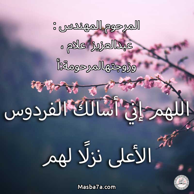دعاء عن أرواح المرحومين المرحوم المهندس : عبدالعزيز علام ، وزوجتهالمرحومة:أ/نجية شوشة