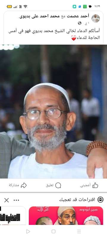 اللهم ارحم ( الشيخ محمد احمد علي بديوي ) وانس وحشته واجمعنا به في جنتك ، اللهم ارحمه بقدر شوقنا له اللهم ارحمه واغفر له .