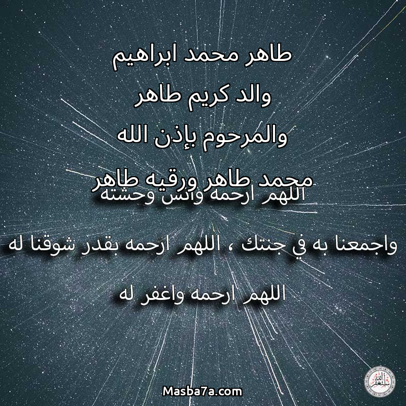 دعاء عن روح المرحوم طاهر محمد ابراهيم والد كريم طاهر والمرحوم بإذن الله محمد طاهر ورقيه طاهر