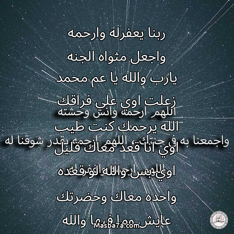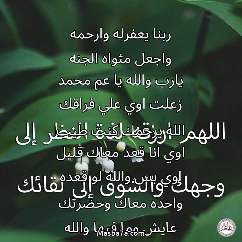 دعاء عن روح المرحوم ربنا يعفرله وارحمه واجعل مثواه الجنه يارب والله يا عم محمد زعلت اوي علي فراقك الله يرحمك كنت طيب اوي انا قعد معاك قليل اوي بس والله لو قعده واحده معاك وحضرتك عايش وما فيها والله يعم محمد زعلت اوي عليك ومش علتش علي حد خالص غير علي حضرتك وجدي الله يرحمه وناس كتير اتوفت واعمامي كتير اتوفت بس والله العظيم حبيتك اوي وحسيتك ان كنت اتمني ان ابويا من طبتك وجدعتك واخلاصك مع ولادك وكنت مصاحبهم وجدعنتك مع صحبي وقعد معاك كنت في منتهي الاحترام وحبيتك اوي والله يعلم ربي وولاد عنيا في عيني وكنت قاعد مع صحبي قالي انا عم محمد موصيني علي اخواتي قولتله يا صحبي والله العظيم منغير ده ميحصل معايا هما اخواتي منغير ده ما حصل وحضرتك ياعم محمد دول اخواتي وعمري ما اتخلي عنهم وانا صح غلط دلوقتي وبحاول اقرب منكوا اوي وربنا يعلم ومش اتخلي عنكوا وبحاول افهم دماخوا علي اصحبكوا ومش عايزكوا تزعلوا مني وربنا يعلم ده مش كلام وانا عرفت انا غلط الفتره دي عمال بكلم وازيد لي حد عرفت ان الفعل مش بالكلام الفعل بالافعال وانا يصحبي اعرفك ان انا قد المسؤليه انا عايزكوا تعتبروني اخوكوا ومش تزعلش مني ابدا وربنا يرحمك ياحبيب قلبي ياعمي محمد والله العظيم انا عارف لو في حد عزيز عليا حصله حاجه مش ازعل زي زعلي عليك وانا حبيتك اوي بزياده علشان انا حبيت عيالك اوي فا زادي حبي ليك ولو عيالك مش كويسين كنت عمري ما اصاحبهم وحضرتك انتم عير حضرتك ربيت صح وانتم كا عيله مشفتش زيكوا والله وربنا يحفظ عيالك واهل بيتك من اي سوء والله العظيم الكلام ده من قلبي يعلم ربي والله يرحمك ياحبيبي وكنت نفسي احضنك والله بس الحضن مكانش من نصيبي نسيبي قليل علشان كنت حضرتك تعرفني زي ما عرفت صحبي وتعرف حضرتك ان اخواتهم كتير ومتقلقش وربنا يرحمك يارب