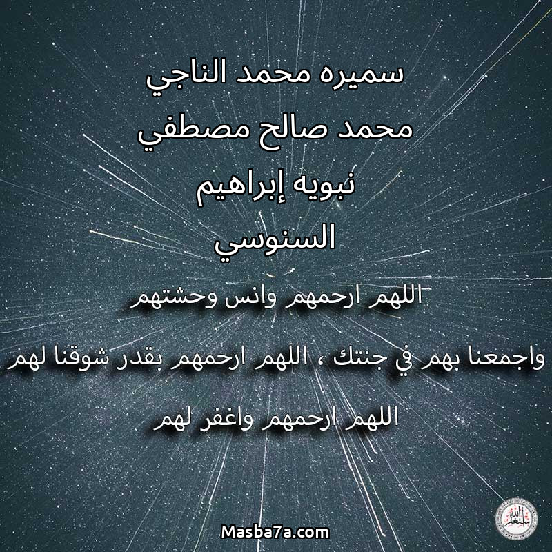 دعاء عن أرواح المرحومين سميره محمد الناجي محمد صالح مصطفي نبويه إبراهيم السنوسي