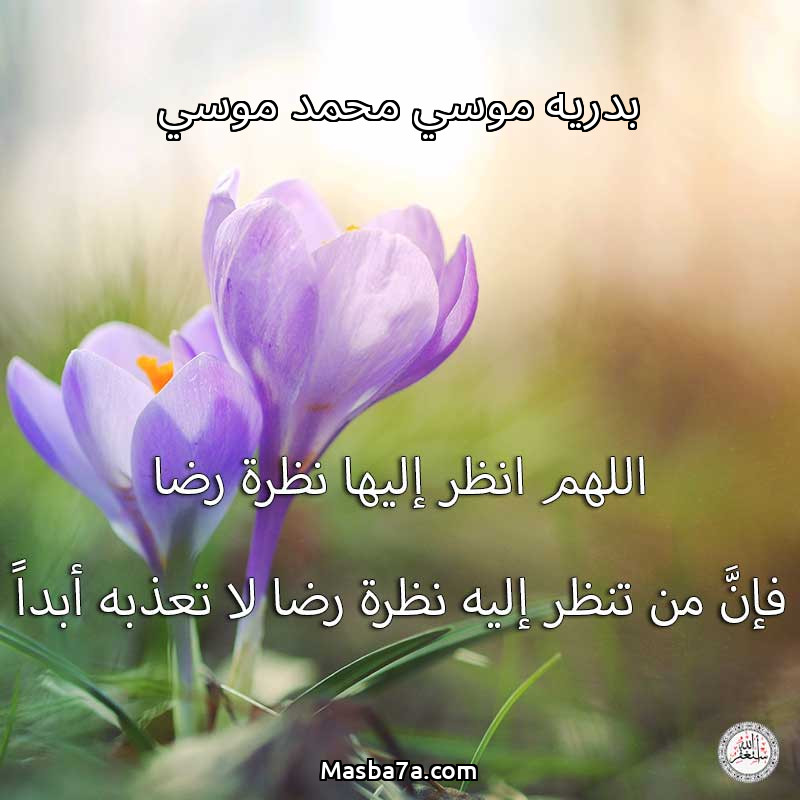 اللهم ارحم ( بدريه موسي محمد موسي ) وانس وحشتها واجمعنا بها في جنتك ، اللهم ارحمها بقدر شوقنا لها اللهم ارحمها واغفر لها .