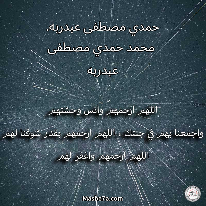 اللهم ارحم ( حمدي-مصطفى-عبدربه. محمد-حمدي-مصطفى-عبدربه ) وانس وحشتهم واجمعنا بهم في جنتك ، اللهم ارحمهم بقدر شوقنا لهم اللهم ارحمهم واغفر لهم.