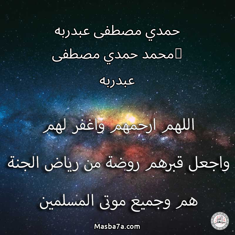 اللهم ارحم ( حمدي مصطفى عبدربه _محمد حمدي مصطفى عبدربه ) وانس وحشتهم واجمعنا بهم في جنتك ، اللهم ارحمهم بقدر شوقنا لهم اللهم ارحمهم واغفر لهم.