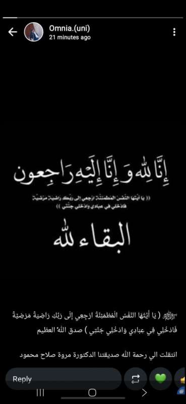 اللهم ارحم ( مروه صلاح ) وانس وحشتها واجمعنا بها في جنتك ، اللهم ارحمها بقدر شوقنا لها اللهم ارحمها واغفر لها .