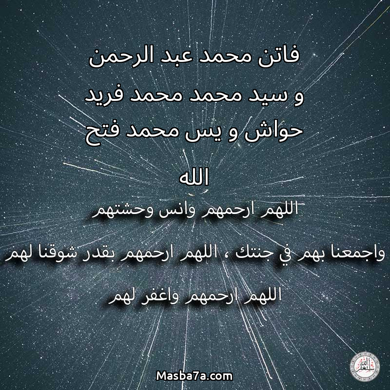 اللهم ارحم ( فاتن محمد عبد الرحمن و سيد محمد محمد فريد حواش و يس محمد فتح الله ) وانس وحشتهم واجمعنا بهم في جنتك ، اللهم ارحمهم بقدر شوقنا لهم اللهم ارحمهم واغفر لهم.