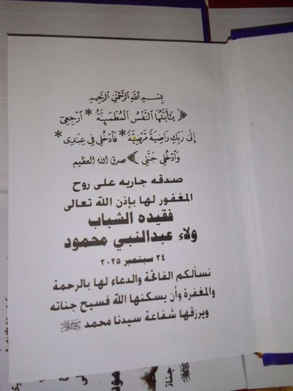 دعاء عن روح المرحومة ولاء عبدالنبي محمود محمد