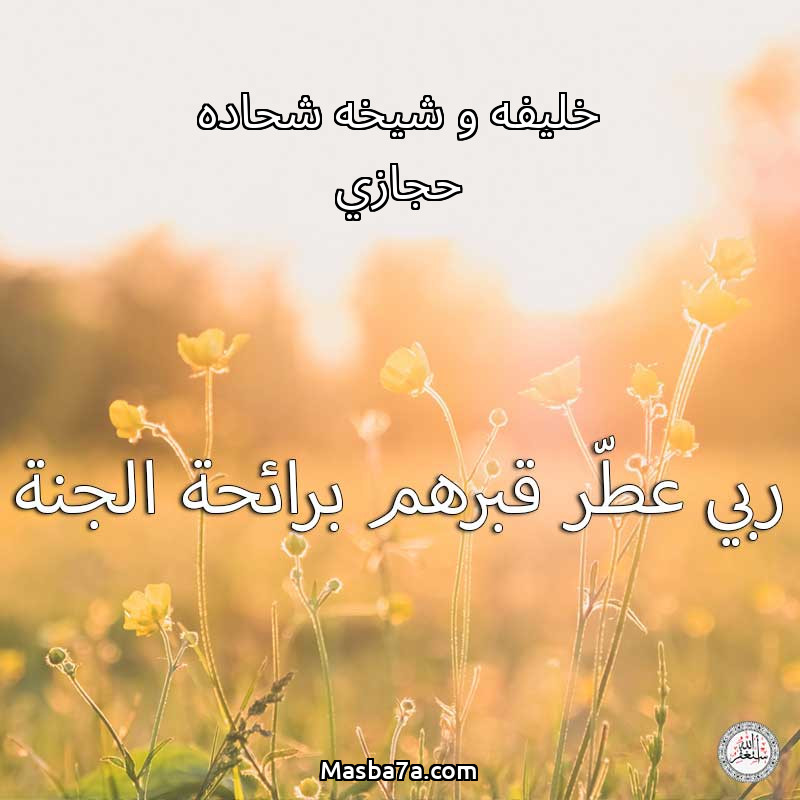 اللهم ارحم ( خليفه و شيخه شحاده حجازي ) وانس وحشتهم واجمعنا بهم في جنتك ، اللهم ارحمهم بقدر شوقنا لهم اللهم ارحمهم واغفر لهم.