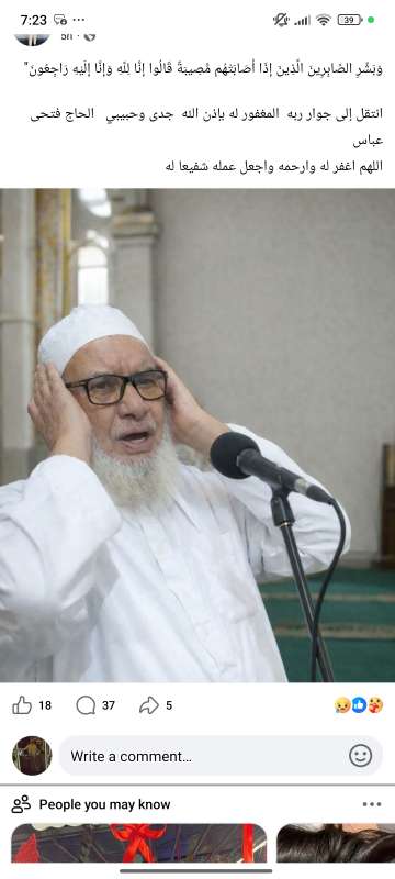اللهم ارحم ( الشيخ فتحى عباس ) وانس وحشته واجمعنا به في جنتك ، اللهم ارحمه بقدر شوقنا له اللهم ارحمه واغفر له .