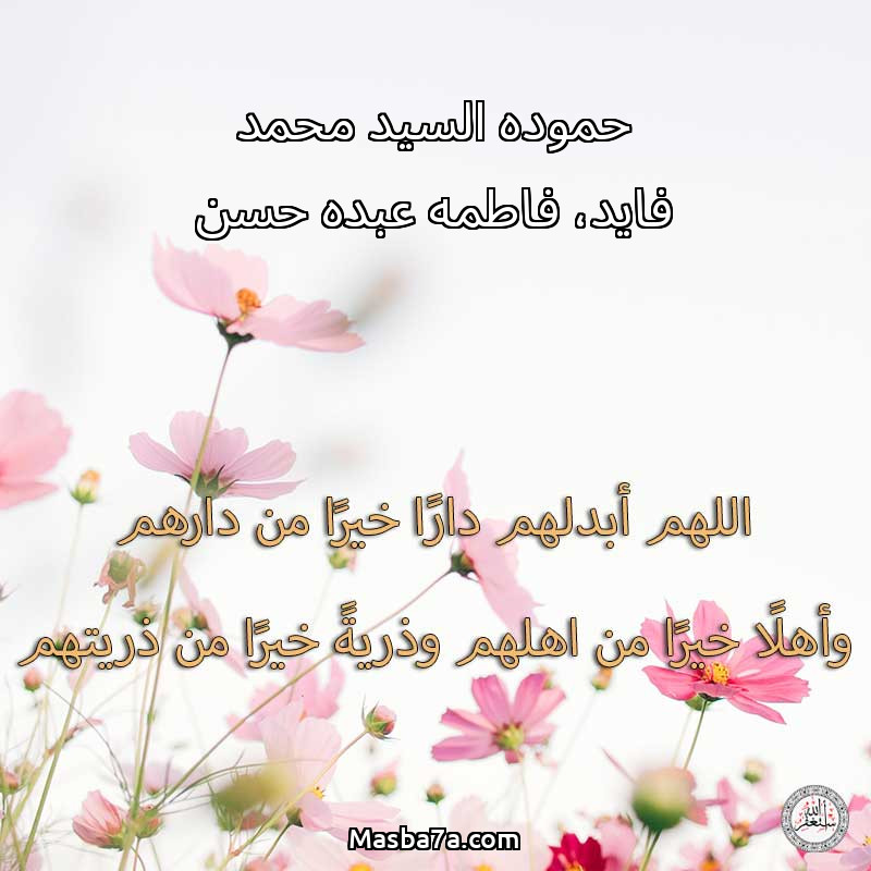 اللهم ارحم ( حموده السيد محمد فايد، فاطمه عبده حسن ) وانس وحشتهم واجمعنا بهم في جنتك ، اللهم ارحمهم بقدر شوقنا لهم اللهم ارحمهم واغفر لهم.