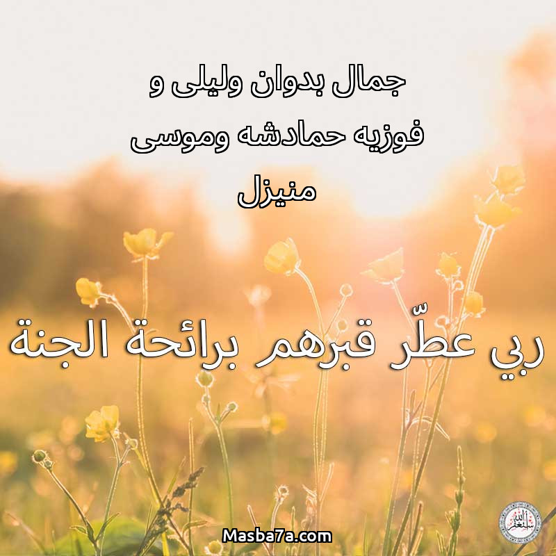 اللهم ارحم ( جمال بدوان وليلى و فوزيه حمادشه وموسى منيزل ) وانس وحشتهم واجمعنا بهم في جنتك ، اللهم ارحمهم بقدر شوقنا لهم اللهم ارحمهم واغفر لهم.