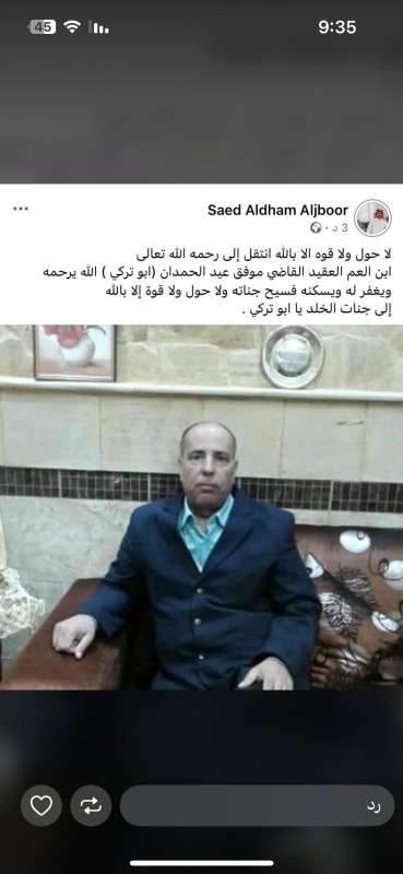 دعاء عن روح المرحوم موفق عيد الدهام ابو تركي
