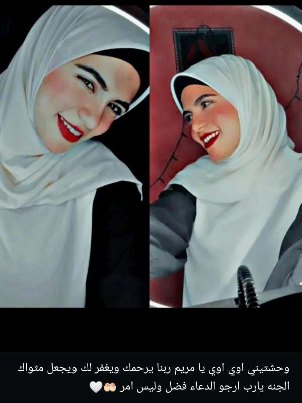 اللهم ارحم ( مريم رمضان عبد المجيد ) وانس وحشتها واجمعنا بها في جنتك ، اللهم ارحمها بقدر شوقنا لها اللهم ارحمها واغفر لها .