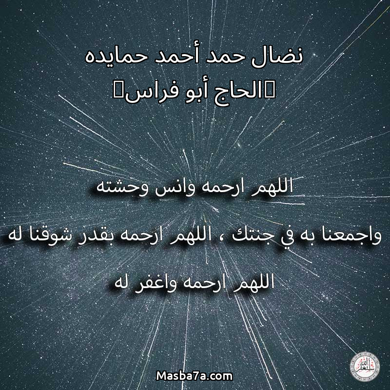 اللهم ارحم ( نضال حمد أحمد حمايده (الحاج أبو فراس) ) وانس وحشته واجمعنا به في جنتك ، اللهم ارحمه بقدر شوقنا له اللهم ارحمه واغفر له .