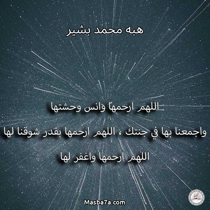 اللهم ارحم ( هبه محمد بشير ) وانس وحشتها واجمعنا بها في جنتك ، اللهم ارحمها بقدر شوقنا لها اللهم ارحمها واغفر لها .