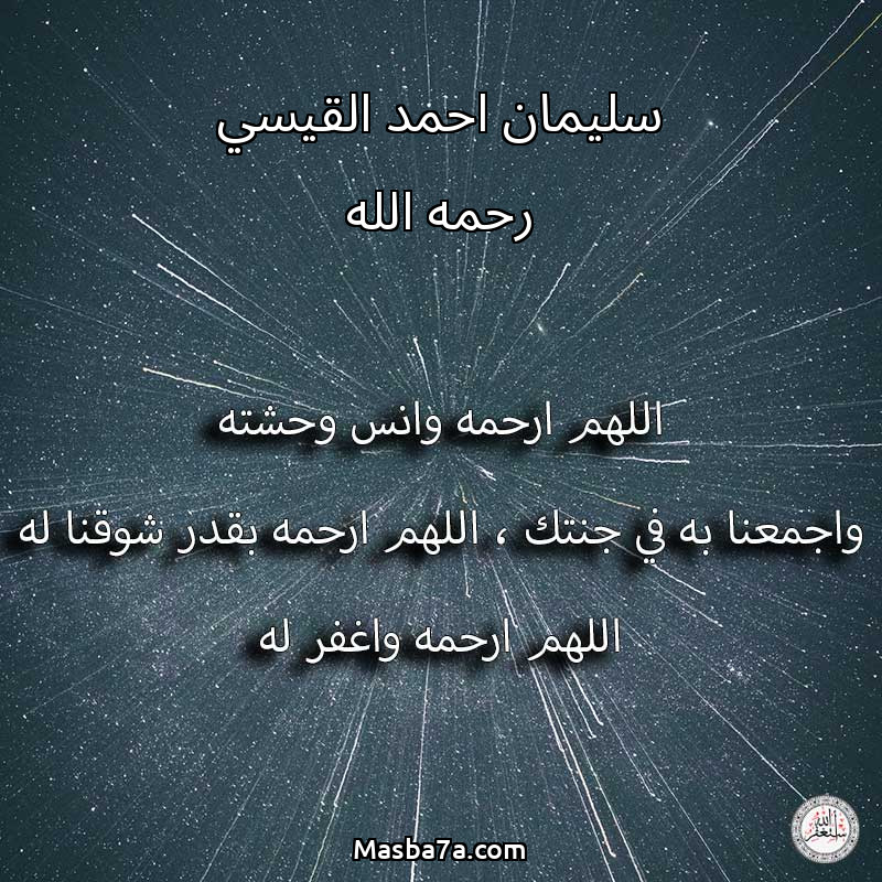اللهم ارحم ( سليمان احمد القيسي رحمه الله ) وانس وحشته واجمعنا به في جنتك ، اللهم ارحمه بقدر شوقنا له اللهم ارحمه واغفر له .