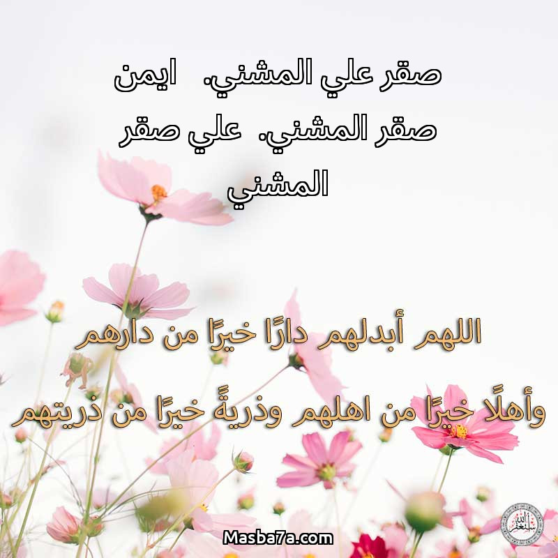 اللهم ارحم ( صقر علي المشني. ايمن صقر المشني. علي صقر المشني ) وانس وحشتهم واجمعنا بهم في جنتك ، اللهم ارحمهم بقدر شوقنا لهم اللهم ارحمهم واغفر لهم.