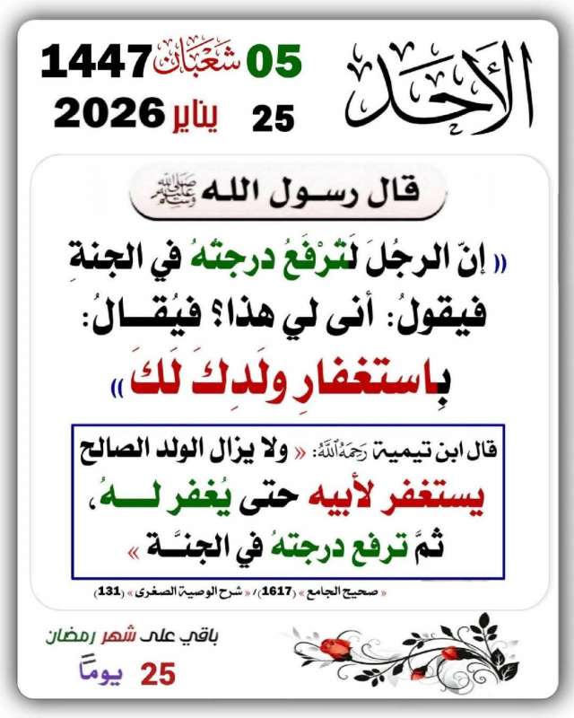 إنَّ لله ما أخذ، وله ما أعطى، وكلٌّ عنده بأجلٍ مُسمّى، فلتصبر ولتحتسب