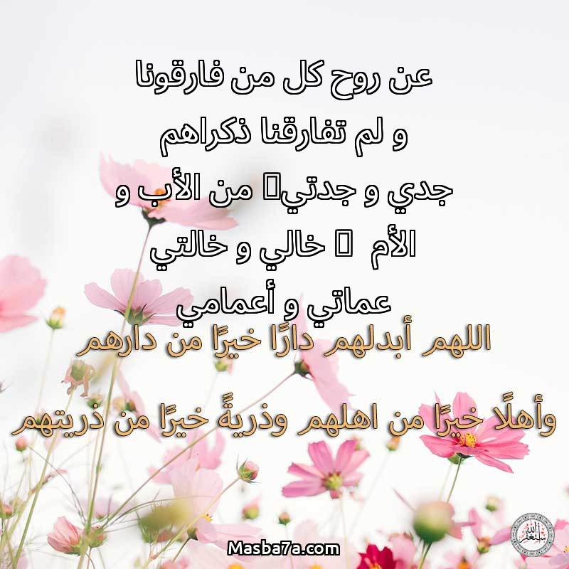 دعاء عن أرواح المرحومين عن روح كل من فارقونا و لم تفارقنا ذكراهم - جدي و جدتي( من الأب و الأم )- خالي و خالتي - عماتي و أعمامي-