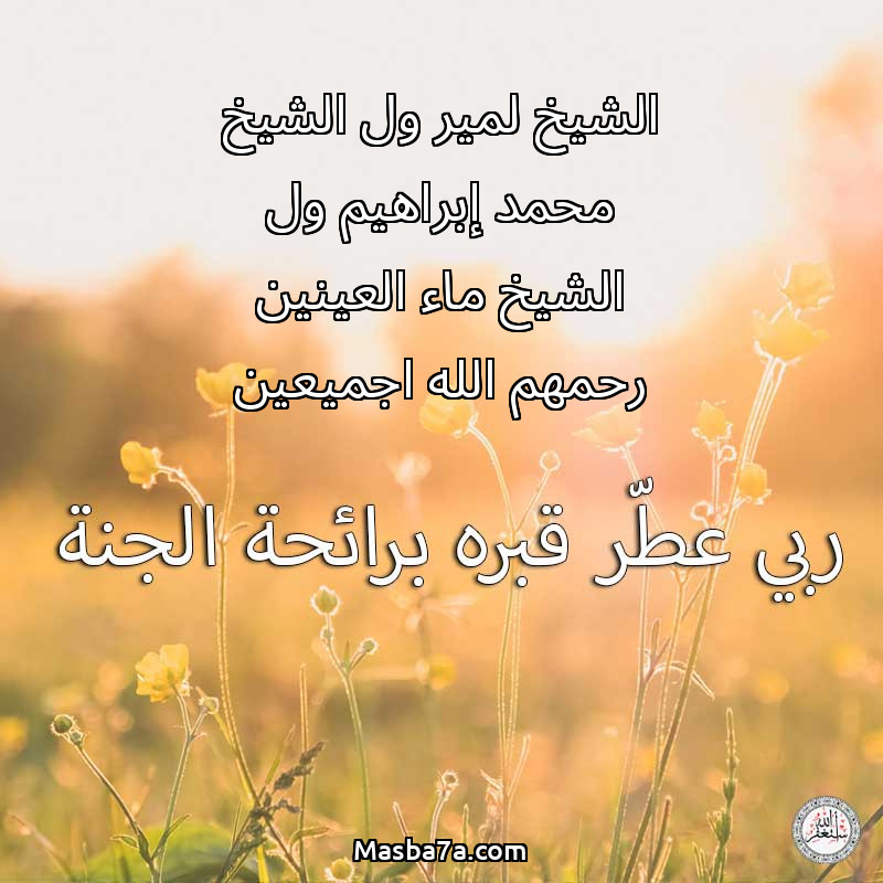اللهم ارحم ( الشيخ لمير ول الشيخ محمد إبراهيم ول الشيخ ماء العينين رحمهم الله اجميعين ) وانس وحشته واجمعنا به في جنتك ، اللهم ارحمه بقدر شوقنا له اللهم ارحمه واغفر له .