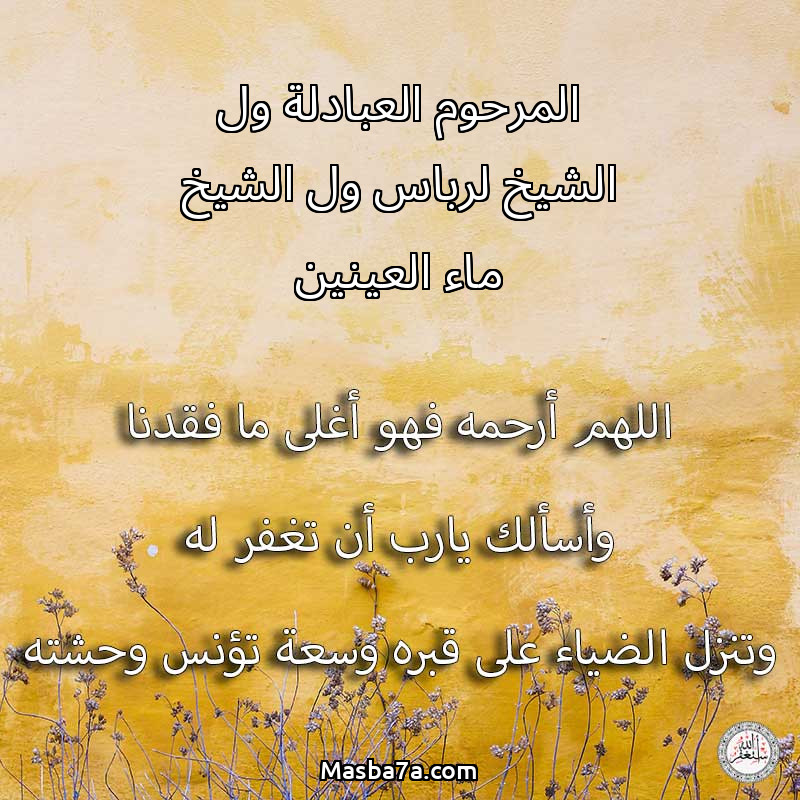 اللهم ارحم ( المرحوم العبادلة ول الشيخ لرباس ول الشيخ ماء العينين ) وانس وحشته واجمعنا به في جنتك ، اللهم ارحمه بقدر شوقنا له اللهم ارحمه واغفر له .