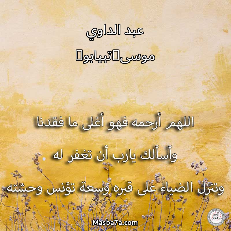 اللهم ارحم ( عبد الداوي موسى(تبيابو) ) وانس وحشته واجمعنا به في جنتك ، اللهم ارحمه بقدر شوقنا له اللهم ارحمه واغفر له .