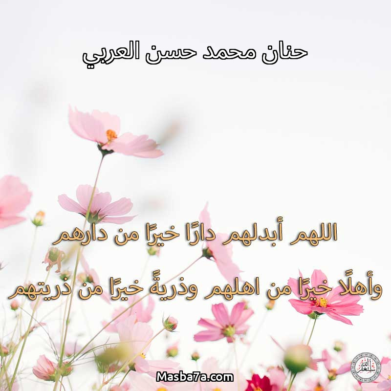 اللهم ارحم ( حنان محمد حسن العربي/حسن محمد حسن العربي ) وانس وحشتهم واجمعنا بهم في جنتك ، اللهم ارحمهم بقدر شوقنا لهم اللهم ارحمهم واغفر لهم.