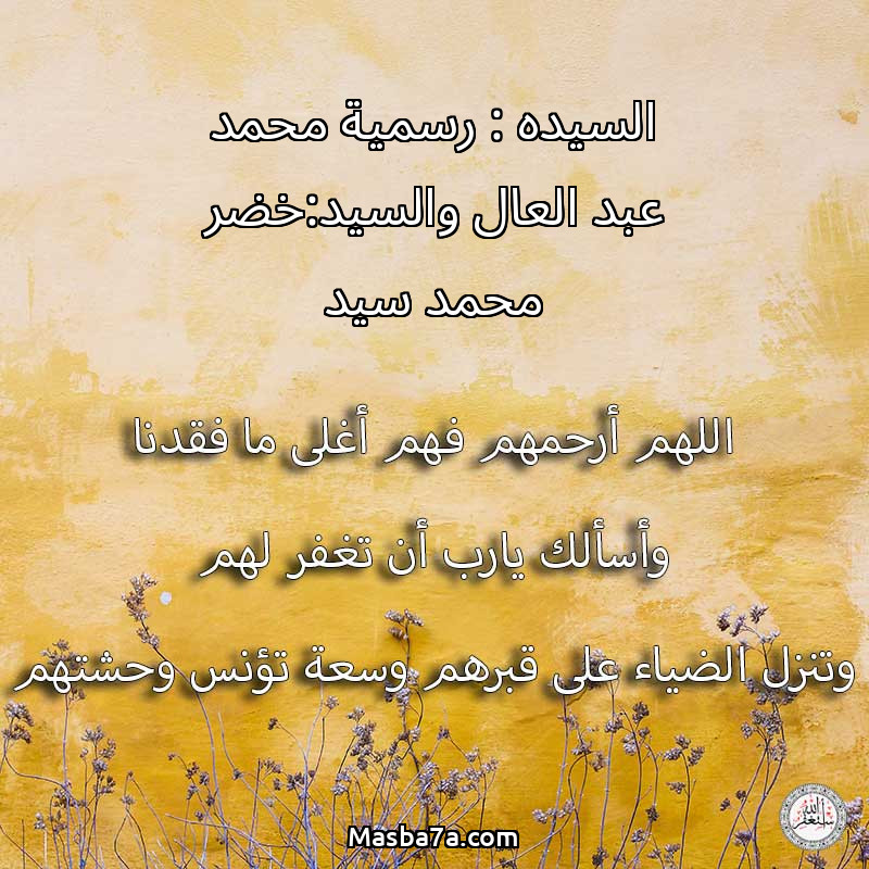دعاء عن أرواح المرحومين السيده : رسمية محمد عبد العال والسيد:خضر محمد سيد