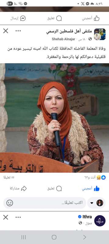 اللهم ارحم ( أمينه تيسير عوده ) وانس وحشتها واجمعنا بها في جنتك ، اللهم ارحمها بقدر شوقنا لها اللهم ارحمها واغفر لها .