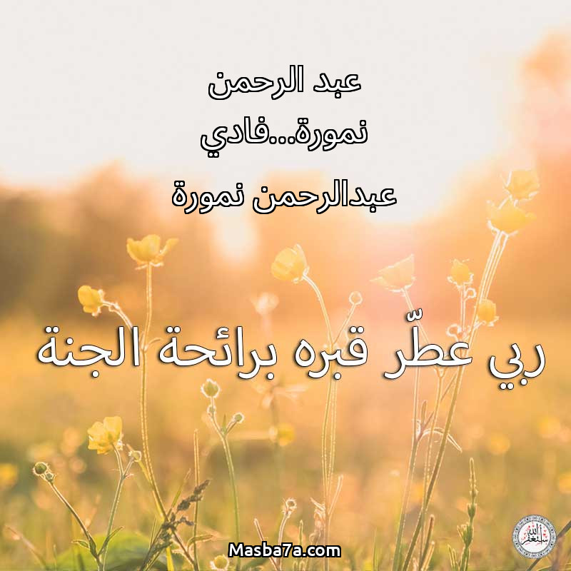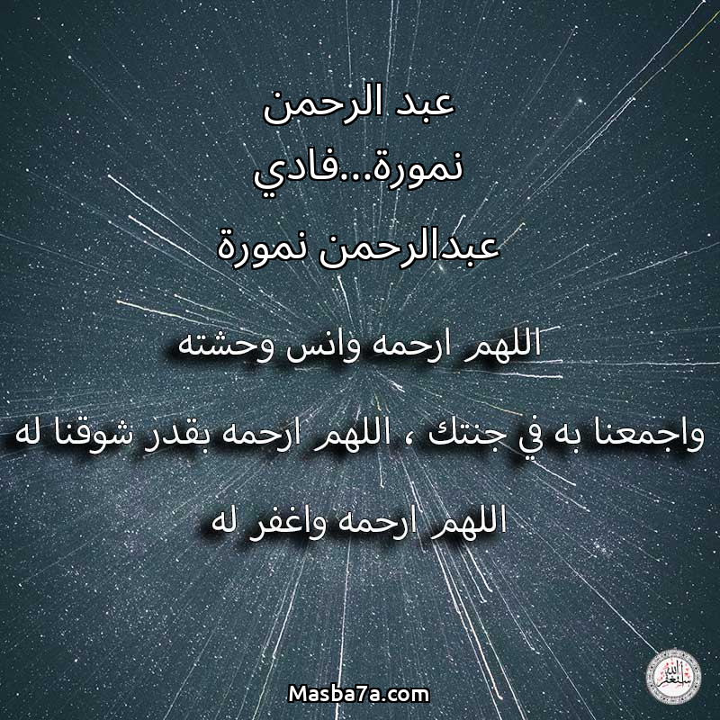 اللهم ارحم ( عبد الرحمن نمورة...فادي عبدالرحمن نمورة ) وانس وحشته واجمعنا به في جنتك ، اللهم ارحمه بقدر شوقنا له اللهم ارحمه واغفر له .