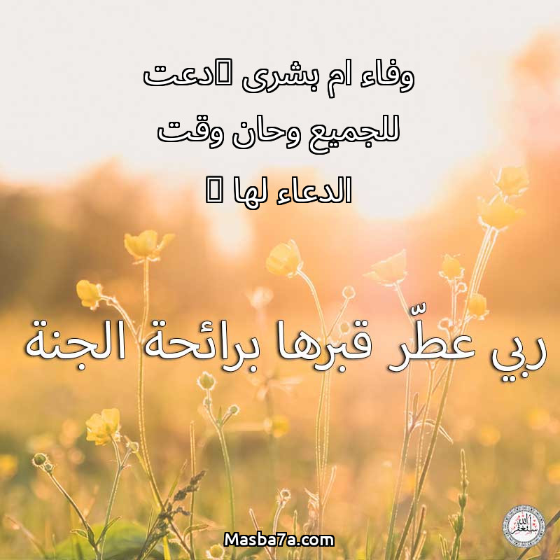اللهم ارحم ( وفاء ام بشرى (دعت للجميع وحان وقت الدعاء لها ) ) وانس وحشتها واجمعنا بها في جنتك ، اللهم ارحمها بقدر شوقنا لها اللهم ارحمها واغفر لها .