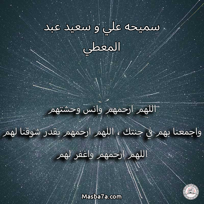اللهم ارحم ( سميحه علي و سعيد عبد المعطي ) وانس وحشتهم واجمعنا بهم في جنتك ، اللهم ارحمهم بقدر شوقنا لهم اللهم ارحمهم واغفر لهم.