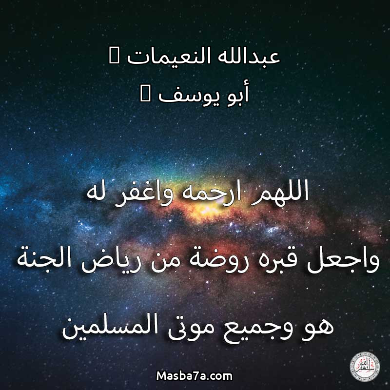 اللهم ارحم ( عبدالله النعيمات ( أبو يوسف ) ) وانس وحشته واجمعنا به في جنتك ، اللهم ارحمه بقدر شوقنا له اللهم ارحمه واغفر له .