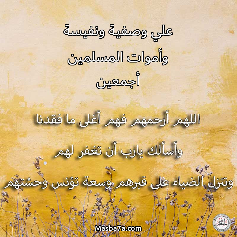 اللهم ارحم ( علي وصفية ونفيسة وأموات المسلمين أجمعين ) وانس وحشتهم واجمعنا بهم في جنتك ، اللهم ارحمهم بقدر شوقنا لهم اللهم ارحمهم واغفر لهم.