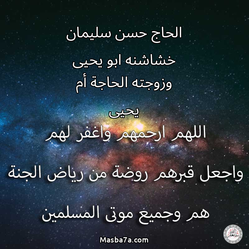 دعاء عن أرواح المرحومين الحاج حسن سليمان خشاشنه ابو يحيى وزوجته الحاجة أم يحيى