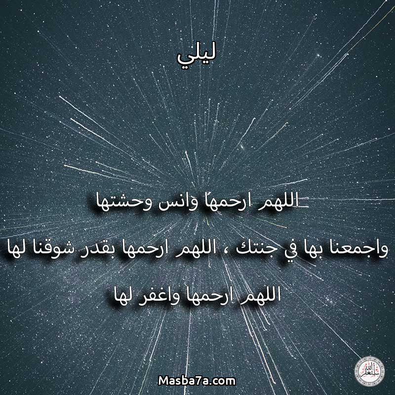 اللهم ارحم ( ليلي ) وانس وحشتها واجمعنا بها في جنتك ، اللهم ارحمها بقدر شوقنا لها اللهم ارحمها واغفر لها .