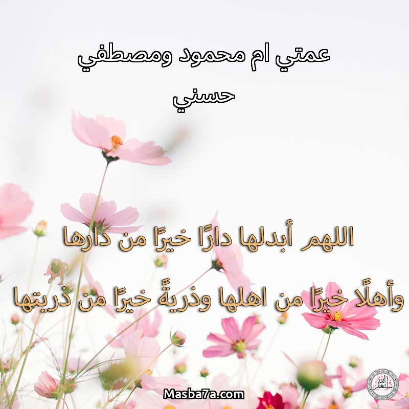 اللهم ارحم ( عمتي ام محمود ومصطفي حسني ) وانس وحشتها واجمعنا بها في جنتك ، اللهم ارحمها بقدر شوقنا لها اللهم ارحمها واغفر لها .