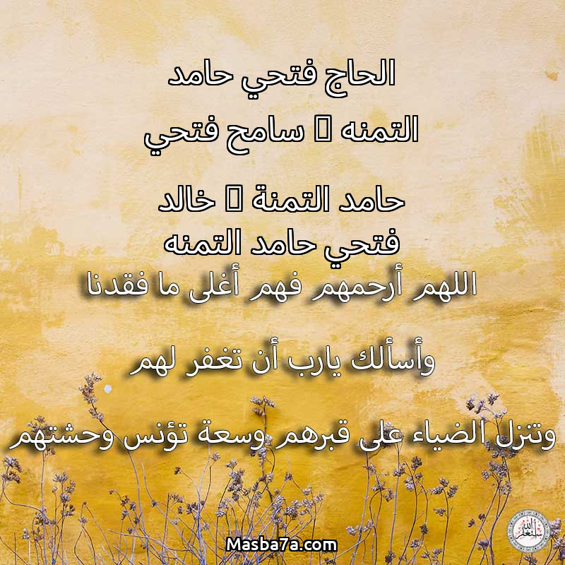 دعاء عن أرواح المرحومين الحاج فتحي حامد التمنه _ سامح فتحي حامد التمنة _ خالد فتحي حامد التمنه