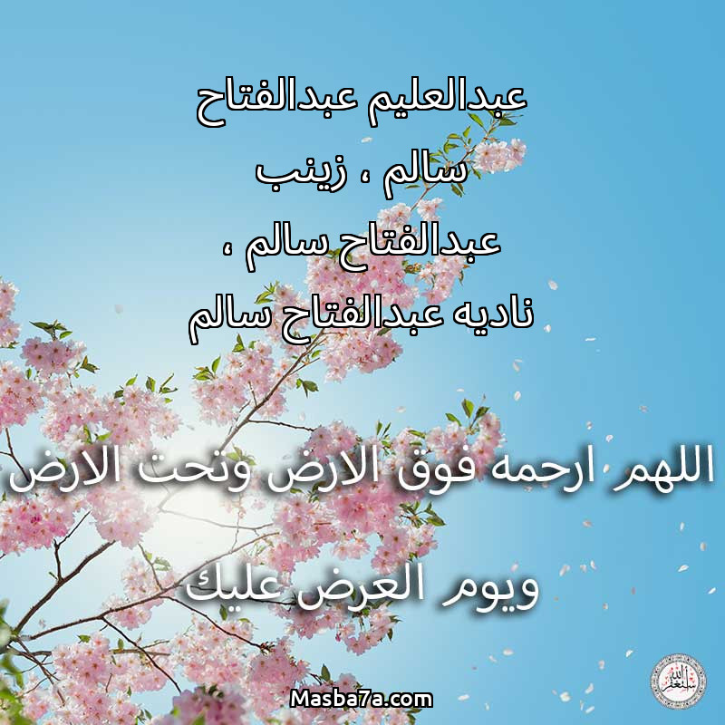 دعاء عن روح المرحوم عبدالعليم عبدالفتاح سالم ، زينب عبدالفتاح سالم ، ناديه عبدالفتاح سالم