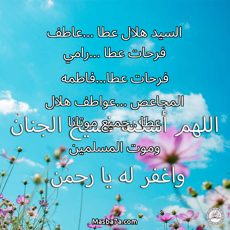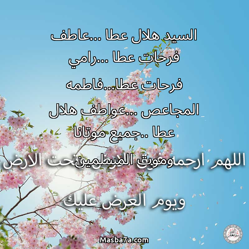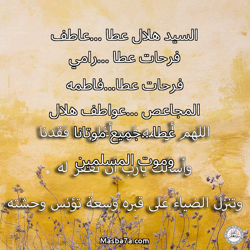 دعاء عن روح المرحوم السيد هلال عطا ...عاطف فرحات عطا ...رامي فرحات عطا...فاطمه المجاعص ...عواطف هلال عطا ..جميع موتانا وموت المسلمين