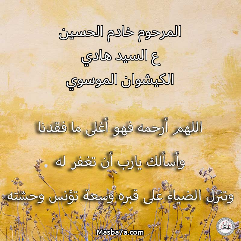 اللهم ارحم ( المرحوم خادم الحسين ع السيد هادي الكيشوان الموسوي ) وانس وحشته واجمعنا به في جنتك ، اللهم ارحمه بقدر شوقنا له اللهم ارحمه واغفر له .