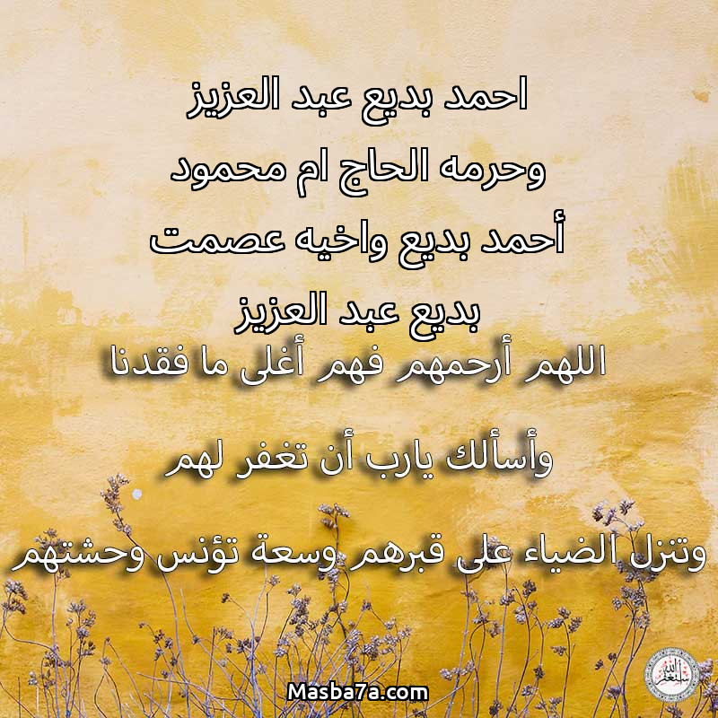 دعاء عن أرواح المرحومين احمد بديع عبد العزيز وحرمه الحاج ام محمود أحمد بديع واخيه عصمت بديع عبد العزيز